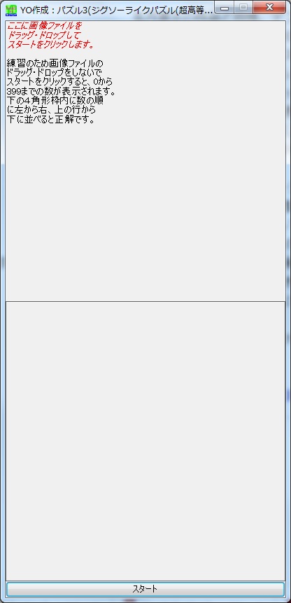 それを400片に分割した4角片がランダムに表示されますので、 マウスで整列してください。