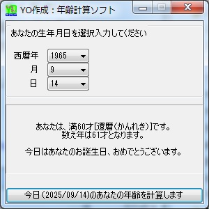 また計算日が誕生の月日の場合はその旨も表示します。