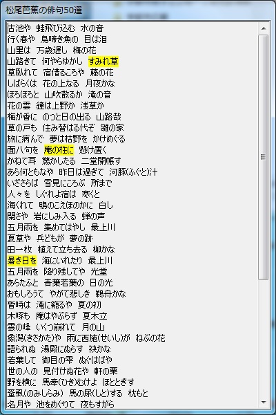 このソフトは松尾芭蕉の有名俳句・代表作【50選】を用いて、