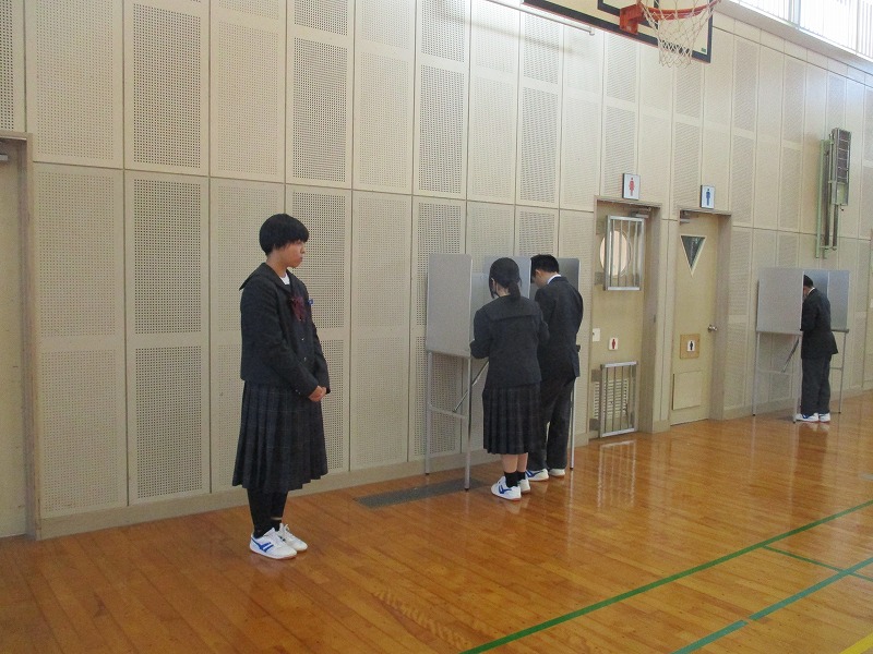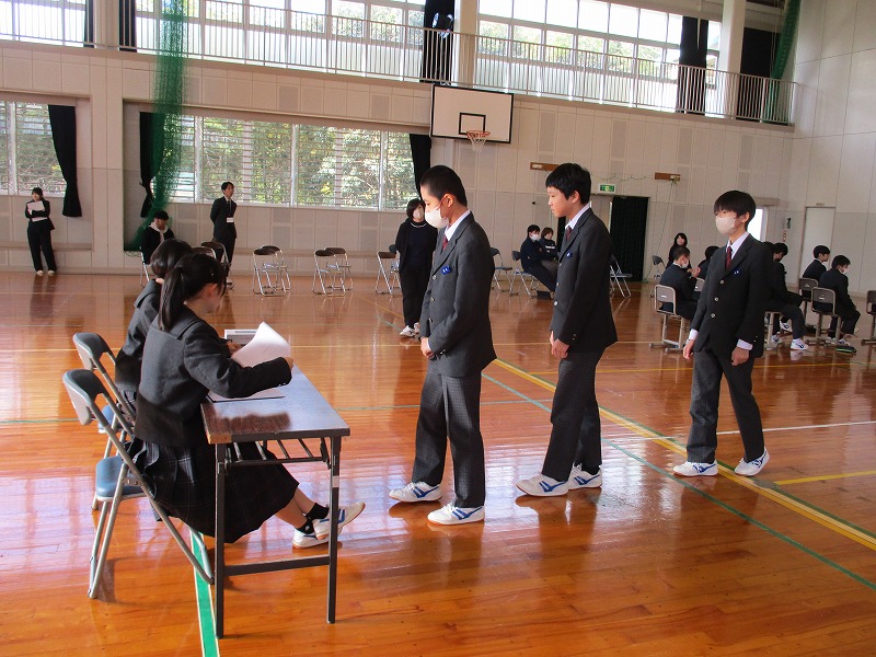 12月5日(金)、生徒会役員立候補者による立ち会い演説会と、選挙が行われました。どの立候補者も、秋芳中をさらによくしよう、生徒のみんなが充実した学校生活を送れるようにしようという気持ちがとてもよく伝わってきて、堂々とした立派な態度でした。その後は、生徒全員が、秋芳中の今後を任すことができる立候補者を投票し、真剣な態度で臨んでいました。