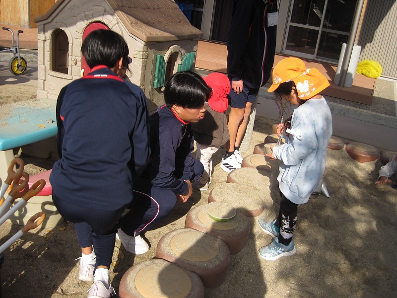 12月12日(金)、秋吉保育園での実習でした。天候の関係でずっと中遊びでしたが、絵本を読んだり、ままごとをしたり、ブロックを作ったり、創造力旺盛な園児たちと仲良くふれあうことができました。3年生にとっては、大変貴重な経験になったと思います。