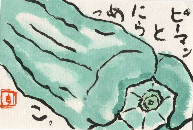 初めて描いたピーマンの絵です。