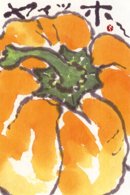4年目です。今年はカラフルなオレンジのパプリカを描いてみました。