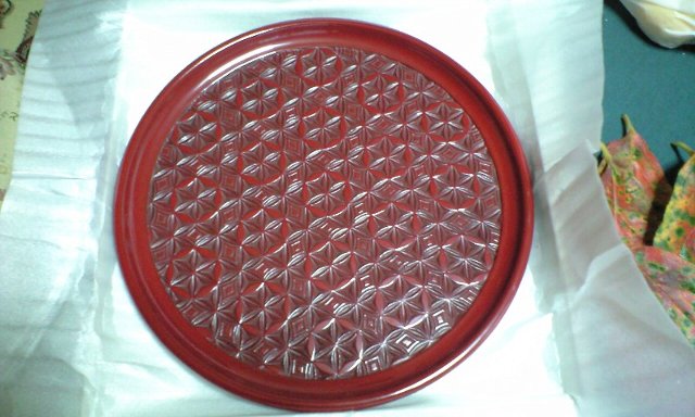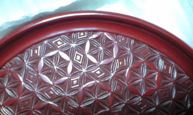 鎌倉彫りの絵柄には、ボタンや椿などが多いのですが、飾り盆でなく、実用的に使いたかったので、食器が乗りやすい細かい柄にしました。