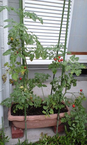 今年初めて、野菜作りをしてみました。庭に野菜作りのスペースが無かったので、プランターに植えてみました。 なすにきゅうり、ピーマン、ミニトマト、それにホウレンソウです。残念ながら、ホウレンソウは種を蒔く時期が遅かった せいか、10cm位までは育ちましたが、それ以上大きくなりませんでした。来年はもう少し早く植えたいです。
