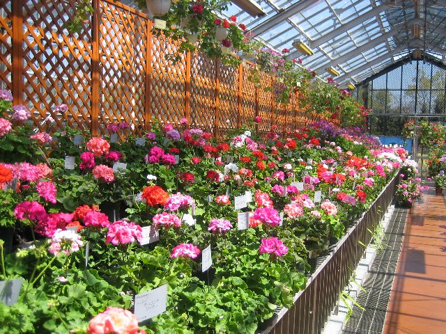 ゼラニウムのいろいろな品種が一堂に集められて、みごとに