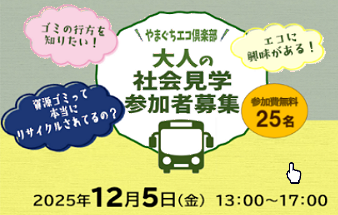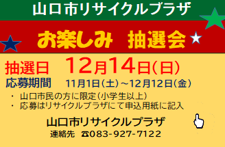山口市リサイクルプラザは、みんなでつくる「循環型都市やまぐち」をめざして、市民と企業と行政が互いに連携しながら、誰もがいつでも気軽に参加し、行動をおこしていく広場です。