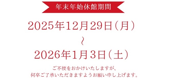 本年も何卒よろしくお願い申し上げします。本日1月4日(土)から通常通りの開館となります。