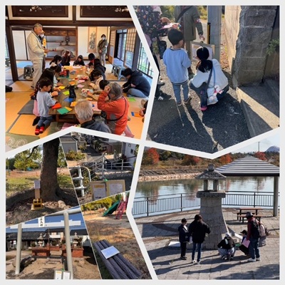 ●11月22日(土)歴史探検ウォークラリー 歴史探検ウォークラリーのの日は秋晴れの絶好の天気に恵まれました。コマ地図を頼りに各チェックポイントをめぐり設定された謎を解き、路地の風景を楽しみながらゆったり歩くコース。設定タイムに最も近くフィニッシュし優勝したのは同タイムで2組も。歩いた後は大広間で昔の遊びと、折り紙で作る花コマのワークショップ。スタッフも一緒に楽しい時間を過ごしました。参加の皆様ありがとうございました。