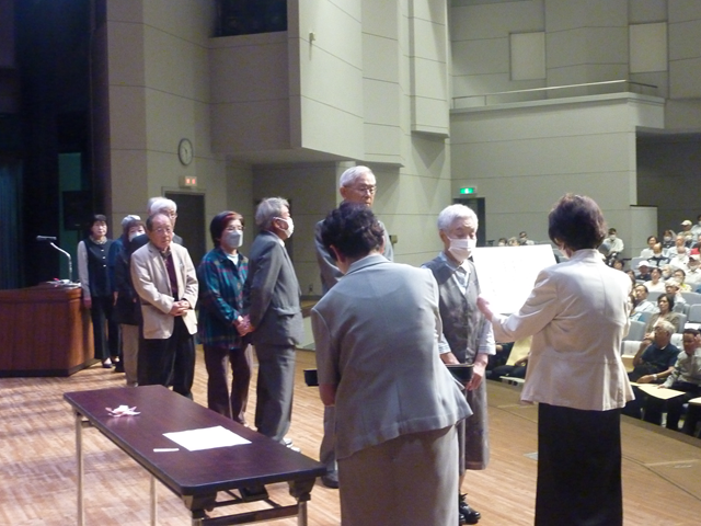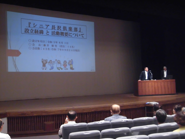 午前中には会員増強クラブの表彰と山口市老連会長表彰を行い、鋳銭司地区シニア長沢倶楽部の藤井敏男会長さんに会員増強の事例発表をしていただきました。一度は解散した単位クラブを地区老連会長の働きかけや新たな単位クラブの設立を熱望する声に答える形で単位クラブの立上げにつながったことや、女性会員を増やそうと女性のつどい(茶話会)を毎月実施していることなどをお話していただきました。皆さまご参考になったと思います。