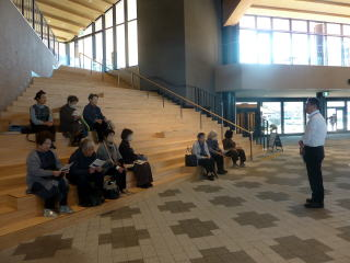 副館長さんから建物の説明を受けながら施設見学を行い、その後多目的室で女性委員会を行いました。すでに個人で来館されておられる方も何名かおられましたが、お天気も良く2階デッキもとても心地よかったです。