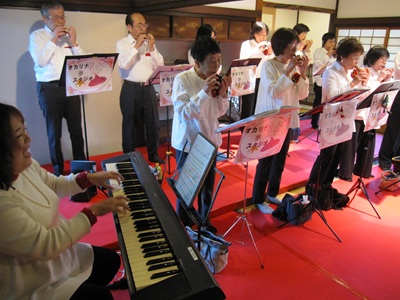 オカリナ夢スタジオの皆様による演奏会を開催。電子ピアノとオカリナ演奏による楽しい音楽と大広間一杯の観客と一体となって大変盛り上がった演奏会になりました。