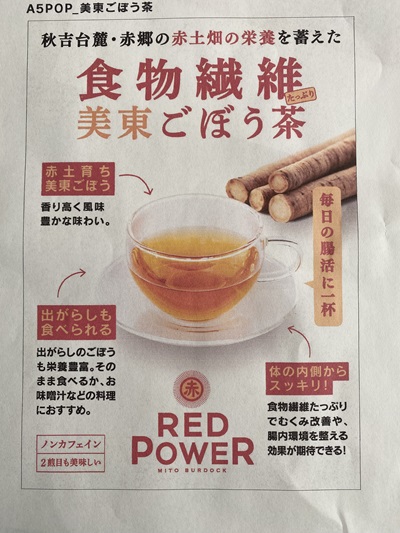 ごぼう茶の販売実績のあるショップで売開始。公民館内の赤GOGO市にも出品して
