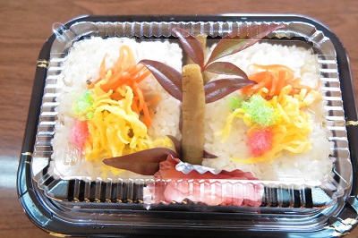 ごぼうのピクルスのトッピングとごぼう酢を使った赤郷地区名産の押しずしです。