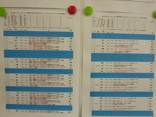 2)児童の帰り時間を考慮して、2台のバスに乗車児童名を振り分けたシフト表を作る。