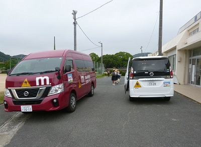 ・平成31年の赤郷小学校の閉校に伴い、地区の小学生17名を隣町の大田小学校への送迎