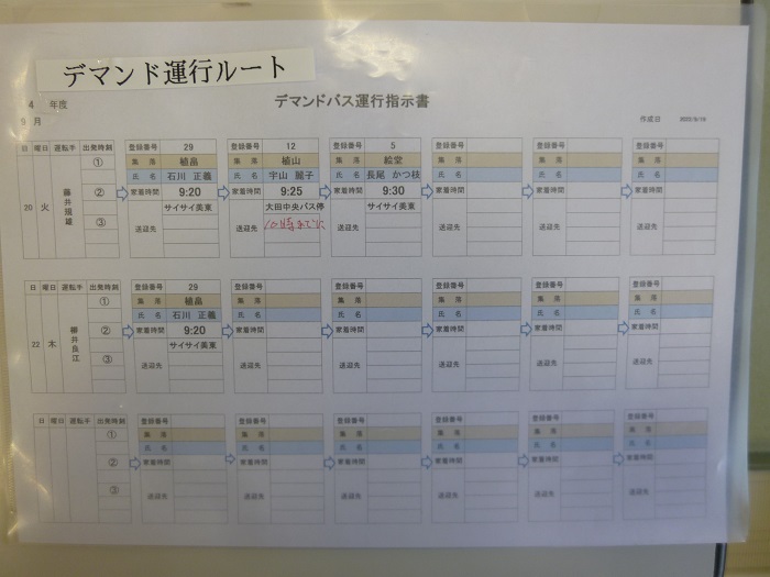 下段(土曜日は行先は基本赤郷交流センターへ 送迎)