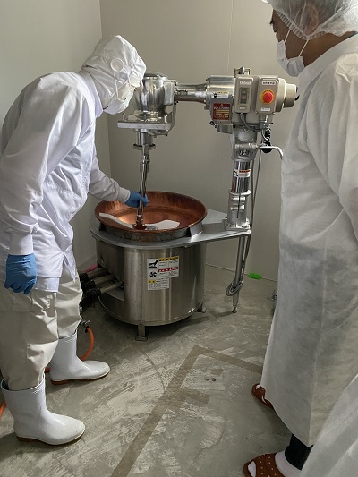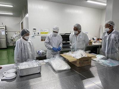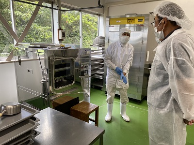 長門ラボ見学 8月9日 新商品開発の為、長門ラボの見学会を行いました 見学前集合 今からクリーンスーツに着替え 見学です 小型フリーズドライ装置 完璧な乾燥野菜が 創れます。 攪拌乾燥機 攪拌しながら乾燥できます ごぼう茶用に検討中 賞品パック袋説明 賞品を入れる袋 説明を聞いてます