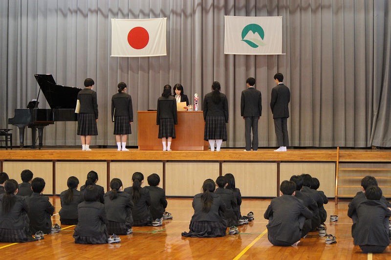 「2学期の終業式、表彰式、生徒会退任式・任命式」