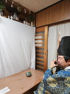 1月6日、おひまちに古熊神社から神主様が御来館されて
